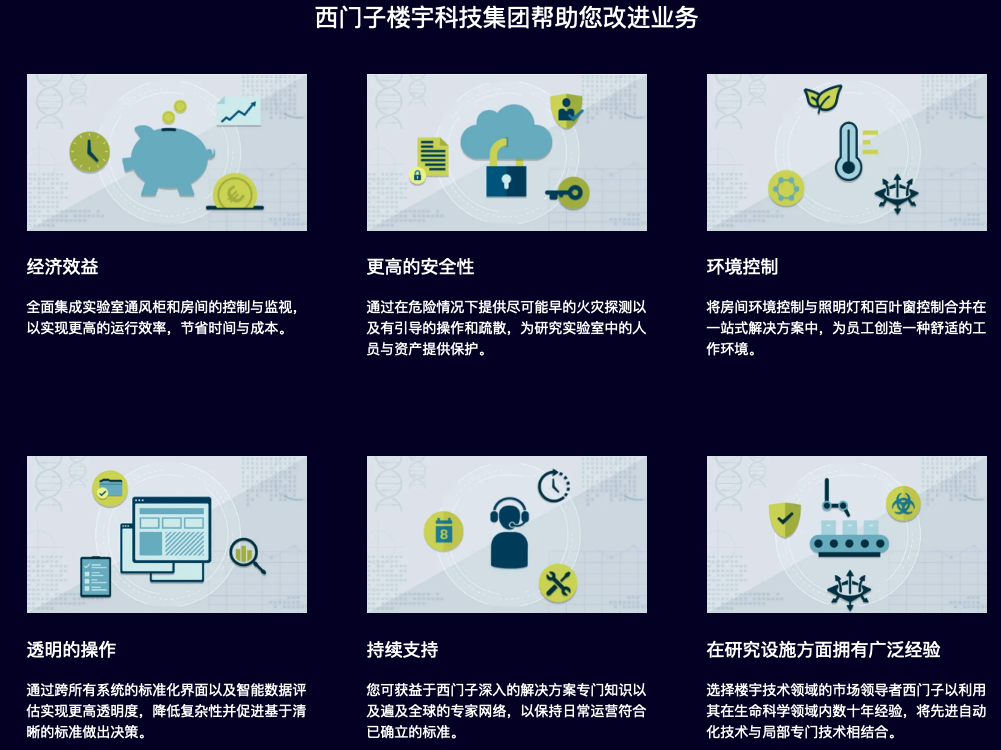 西门子面向实验室的楼宇系统产品线包含适合所有应用场合的标准化解决方案。通过全面集成所有组件,西门子将这些系统合并为满足每个设施特定要求的具体解决方案。